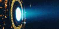 It is called an ion thruster. No pipe-dream technology, this test engine in a JPL vacuum chamber is a twin of the one powering the Deep Space 1 spacecraft, which has logged more than 167 million miles (269 million kilometers) in space since its launch on Oct. 24, 1998.
