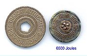 After bolting the work coil to the bus bars, it's covered by the blast shield. The energy discharge capacitors are then charged to the desired high voltage, storing a large amount of potential energy. The stored energy will be suddenly released into the work coil, creating an ultrastrong magnetic field inside the coil which radially crushes the coin. The interior of the blast shield is lined with steel, since Lexan alone cracks under repetitive bombardment by the copper fragments and the explosion's shockwave."
