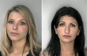 Carolina Panthers cheerleaders, Renee Thomas, left, and Angela Keathley, shown in these Hillsborough County, Fla., Sheriff's Office booking photos, were arrested early Sunday, Nov. 6, 2005 after a bar dispute that broke out after patrons complained the women were allegedly having sex in a bathroom stall. [AP]