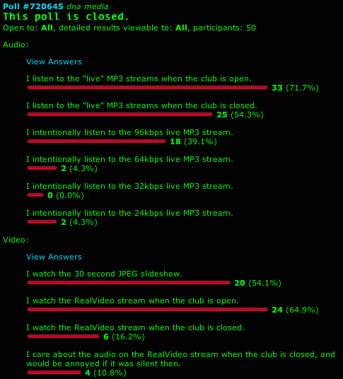Though, you know, I'm not sure anyone actually cares about that... Right now the live streams (and by extension, the Real stream) re-broadcast audio from the saved archives during the day when we're not open. I guess I could just give up on that and have them be silent during the day, and assume that people who want to listen to the archives will do so explicitly.