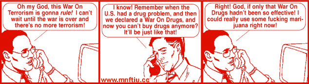 9-11! 9-11! 9-11! It's very Giuliani. Tho Guliani was effective. Manhattan was no fun anymore after Rudy got through with it. AT ALL. Good for families, though, I guess... That comic strip is the best.
