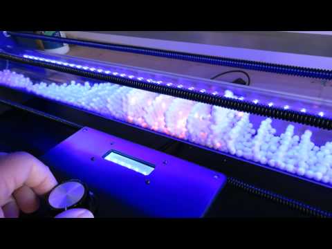 The example shown here was built by San Luis Obispo resident and nuclear engineer Mike Sullivan. It consists of a clear tube with a speaker at each end containing hundreds of fluorescent plastic beads. The speakers produce two different pitches -- one (to left) fixed at A220, and one (to right) that can be varied over a range of about a half-step up or down from A220 by turning the single knob.