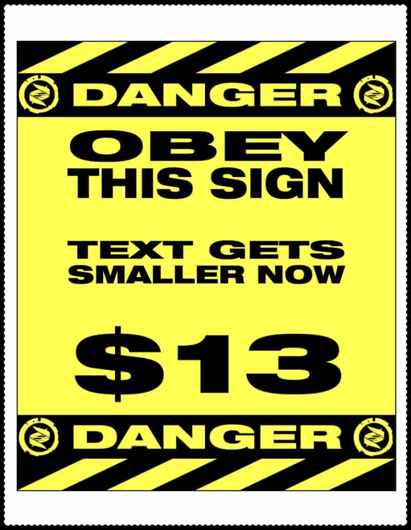 - Text should be as large as possible to fill the entire sign without overflowing.